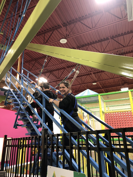 Même lorsque notre fille était plus petite, nous n’avons jamais eu de problème à suivre nos enfants dans les différentes installations: on s’amuse avec eux! Nous n’hésitons pas, non plus, à aller sauter en famille dans l’espace réservé aux trampolines… Besoin d’une pause pour reprendre notre souffle? On mange un popcorn accompagné d’une barbotine à la limonade!