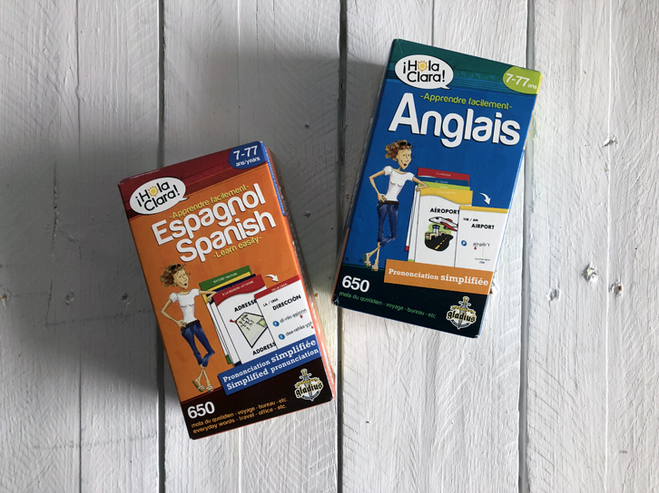 Voilà une très belle série de cartes pour pratiquer et apprendre une autre langue. Chaque boîte de Hola Clara comprend 650 cartes, et permet à toute la famille de pratiquer un large éventail de mots en anglais ou en espagnol. Un bel outil d’apprentissage!