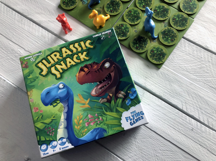 Dans ce jeu des éditions The Flying Games, on doit déplacer et nourrir nos dinosaures à l’aide de petite tuiles, qui nous permettent de récolter des points. Certaines tuiles influencent aussi le déroulement de la partie et peuvent faire apparaître des tyrannosaures, avec lesquels il est possible de supprimer les pions de l’adversaire. C’est un jeu amusant de stratégie, qui plaira beaucoup aux jeunes de 8 ans et plus.