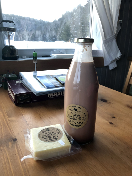 Impossible, pour nous, d’aller dans Lanaudière sans se procurer du lait d’antan, du fromage ou du yogourt de la Ferme Vallée Verte Fromagerie, à Saint-Jean-de-Matha! Vous les reconnaîtrez, comme dit notre fille de 4 ans, par leur étiquette qui ressemble à «un dinosaure qui a pondu du lait au chocolat» 😉 … Leur lait non homogénéisé (avec de la crème sur le dessus) et leurs yogourts sont si savoureux!