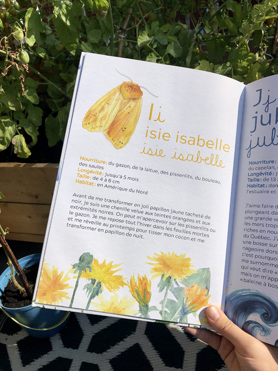 Dans chaque page, on retrouve juste assez de détails pour en apprendre davantage sur l’espèce présentée et ne pas décourager les plus jeunes avec des textes trop longs. On aime particulièrement que l’abécédaire soit construit pour nous permettre de découvrir tout plein d’animaux du Québec!