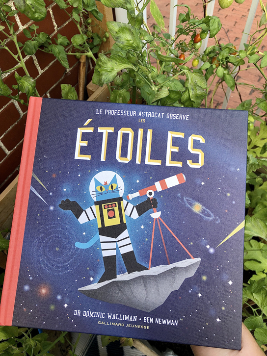 C’est la première fois que l’on découvre un album du Professeur Astrocat et on aime beaucoup! Le Professeur Astrocat observe les Étoiles est un petit documentaire qui s’adresse aux enfants d’environ 4 ans et plus et qui leur présente plusieurs notions d’astronomie comme la vitesse de la lumière, les trous noirs ou encore les galaxies.
