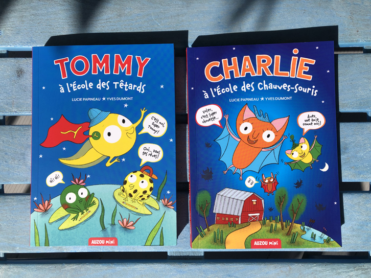 Dans Tommy à l’École des Têtards, on découvre, entre autres, comment les têtards deviennent des grenouilles. Dans Charlie à l’École des Chauves-souris, on apprend tout plein de détails intéressants sur la migration et la façon dont les chauves-souris communiquent entre elles.