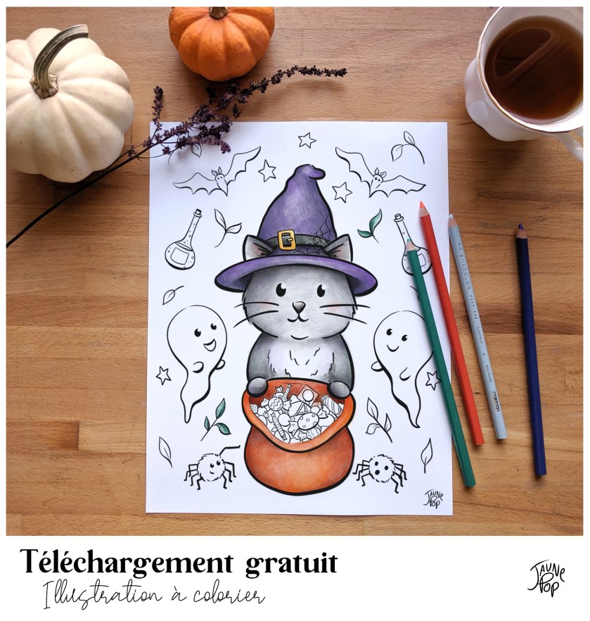 Pour patienter jusqu’à l’Halloween ou pour vous amuser le jour même, vous trouverez encore plusieurs coloriages d’automne et d’Halloween, à imprimer gratuitement, sur la page Coloriages de Marie-Anne! On aime aussi beaucoup la jolie guirlande de citrouilles qu’elle nous propose de créer sur son site Jaune Pop!