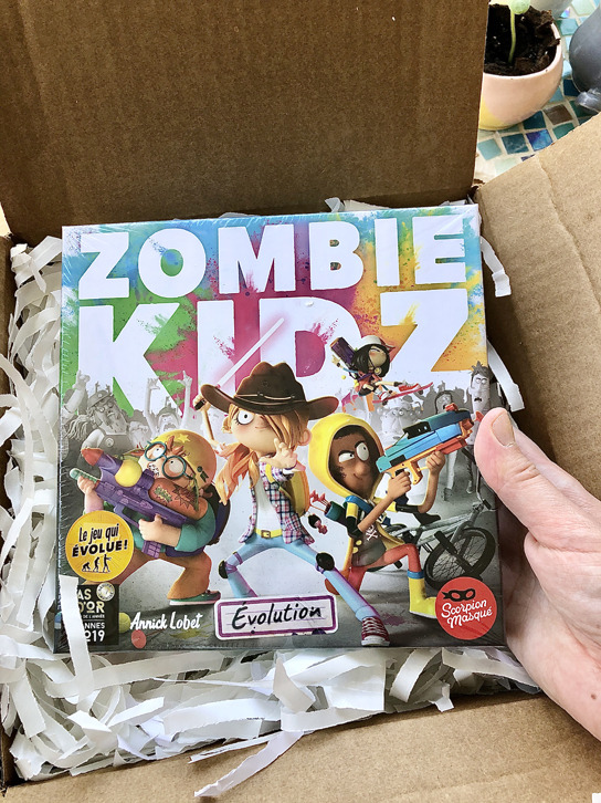 Le jour même de l’Halloween, nous allons assurément en profiter pour jouer plusieurs parties de Zombie Kidz, l’un des jeux favoris de nos enfants! Créé par Scorpion Masqué, une maison d’édition québécoise de jeux de société, il s’agit d’un jeu évolutif où l’on doit travailler en équipe pour chasser les zombies de l’école. Plus on joue, plus on ouvre de nouvelles enveloppes mystères qui font évoluer le jeu et qui le rendent plus complexe. Nous sommes rendus aux dernières enveloppes et, croyez-moi, c’est de plus en plus difficile!
