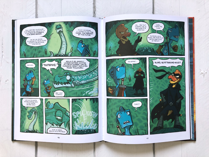 «Maman, j’ai déjà terminé de le lire: c’était super bon! Peux-tu m’acheter les deux autres?» Lorsque nous avons reçu le plus récent tome d’Aventurosaure, mon fils de 8 ans est allé s’enfermer dans sa chambre… et il a entièrement lu la bande dessinée de Julien Paré-Sorel en une seule soirée! Que demander de mieux?