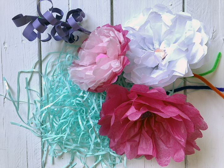 Le principe est simple: vous avez seulement besoin de cure-pipes et de quelques papiers de soie. Vous placez des carrés de papier de soie les uns sur les autres (environ 4 ou 5) et vous les pliez en accordéon. Vous attachez le cure-pipe au centre puis vous séparer délicatement toutes les couches de papier de soie. Vous pouvez même ajouter un petit pschitt de parfum 😉 Les possibilités sont infinies et ça fait un superbe cadeau à offrir pour Pâques!