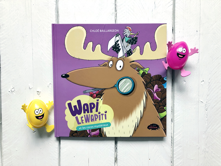 - Wapi le Wapiti et les cocos de Pâques de Chloé Baillargeon est également nouveau en librairie ce mois-ci! Est-ce que Wapi et son ami Ti-Pic réussiront à trouver pourquoi Serge Lelièvre s’est mystérieusement mis à pondre des oeufs en chocolat?
