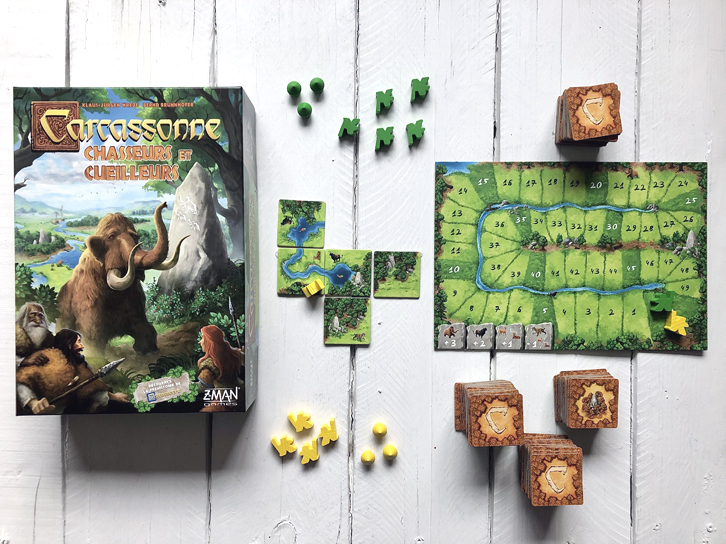 Carcassonne Chasseurs et cueilleurs est une nouvelle version du jeu de placement de tuiles, qui se passe des milliers d’années avant la construction de la cité de Carcassonne et qui peut se jouer de 2 à 5 joueurs. Dans cette version recommandée pour les jeunes de 8 ans et plus, les joueurs placeront leurs tuiles de façon à compléter des rivières, des forêts et des prairies.