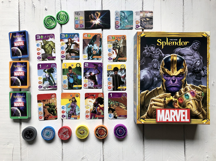 Les pierres fines étant au centre de la dynamique de Splendor, vous comprendrez que ce jeu était plus qu’approprié pour créer une version où il faut vaincre Thanos grâce aux pierres de l’infini! Dans Splendor Marvel, le principe du jeu est le même, mais l’on s’amuse, cette fois, en bâtissant une équipe de super-héros. Cette version plaira encore plus à vos jeunes de 8 ans et plus.