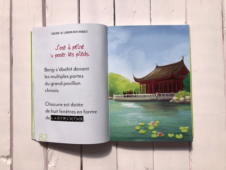 Publié aux Éditions Auzou, Énigme au Jardin botanique est le 3e récit des histoires d’Esther et Ben, qui sont cousin et cousine. Alors qu’Esther adore jouer à la journaliste, prendre des notes et résoudre des mystères, Ben a beaucoup de talent pour dessiner dans son carnet de croquis et pour faire rire sa cousine…