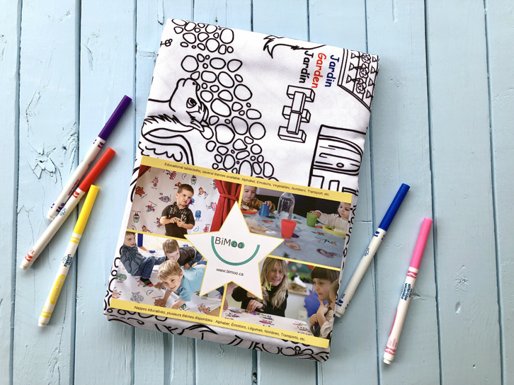 En plus de proposer des coloriages originaux sur différents thèmes, les nappes Bimoo ont une visée éducative, puisqu’elles présentent aussi des mots en trois langues (français, anglais et espagnol). Utiles pour votre espace jardinage ou en camping, elles feraient un superbe cadeau de fin d’année pour votre éducatrice favorite!