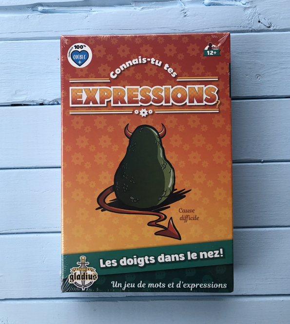Cet été, on nous a fait découvrir l’un des boîtiers Connais-tu tes expressions? proposé par Gladius. Il s’agit en fait d’un jeu pour animer une soirée en famille ou entre amis (pour les adultes ou les jeunes d’environ 12 ans et plus), où les différents invités doivent essayer de deviner à quel mot ou expression québécoise correspond chacune des illustrations sur les 20 cartes. Pssst… le jeu peut aussi facilement se jouer en mode «chasse au trésor» dans le chalet! 😉