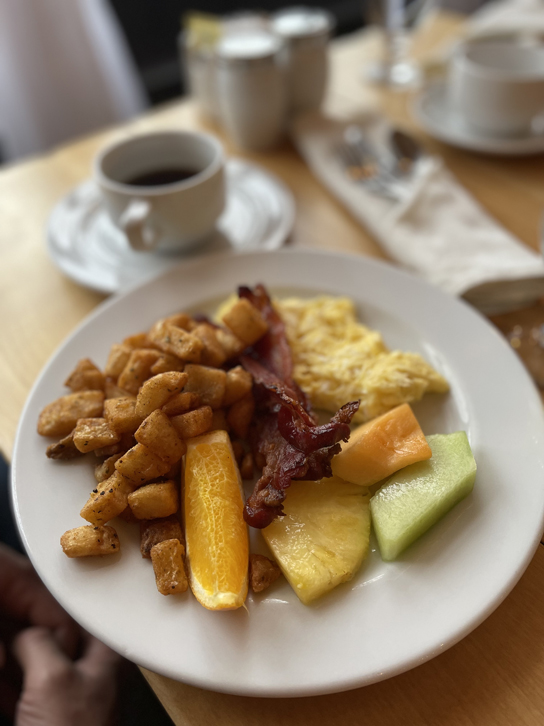 Après une bonne nuit de sommeil dans le calme, nous allons prendre un bon petit déjeuner au restaurant de l’Hôtel.