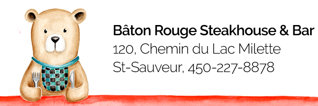 Nous avons à peine le temps de nous poser que c’est déjà l’heure d’aller souper! On nous attend, cette fois, au Bâton Rouge Steakhouse & Bar à St-Sauveur.