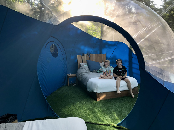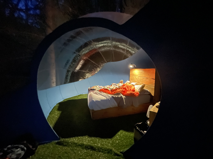 Nous avions, pour notre part, réservé la toute nouvelle Double Bulle Galiléo, qui peut accueillir 4 personnes avec ses deux lits doubles. Il s’agit en fait de deux bulles pressurisées de 4 mètres, installées sur pilotis et ouvertes l’une sur l’autre. Quel hébergement surprenant!