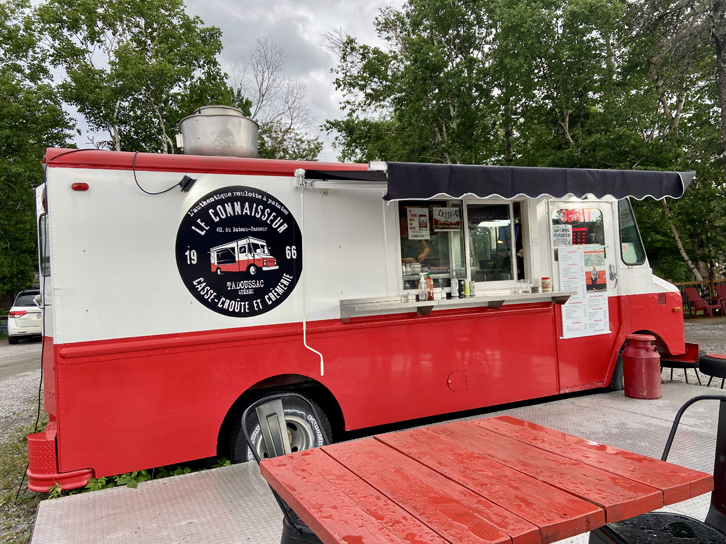 Envie d’un bon burger, cheeseburger, hot dog ou poutine? Allez faire un tour au Casse-croûte Le Connaisseur! Même s’il s’agit bel et bien d’un foodtruck, ne vous empêchez pas de vous y rendre lors d’une journée pluvieuse, puisqu’il y a un endroit sur place où manger à l’abri.