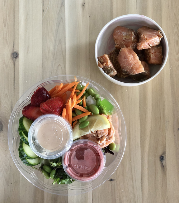 À la fois Auberge et restaurant, un arrêt chez La Galouïne s’impose! Selon le moment de la journée, vous y trouverez également certains repas pour emporter. Pour notre tout premier souper, nous nous y sommes procuré un poke bol tout frais ainsi que de délicieuses bouchées de saumon à l’érable.