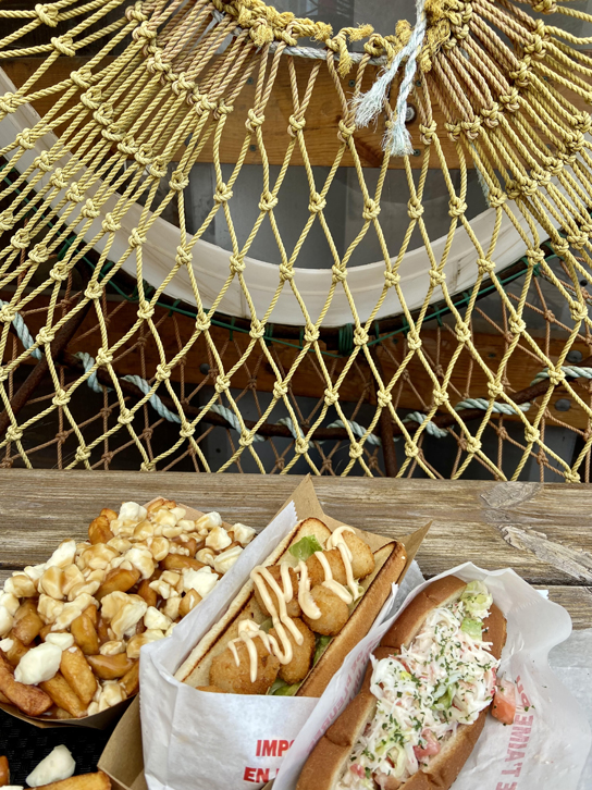 Nous avons aussi testé deux casse-croûtes à Sept-Îles, soit celui du Pêcheur, vraiment intéressant avec ses guédilles et ses po-boy (des sandwichs d’inspiration louisianaise aux fruits de mer frits), car on mange à l’intérieur d’une immense cage à homards.