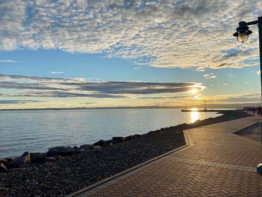Sept-Îles est en fait la dernière ville avant votre entrée dans la Minganie. Après, le paysage change, les commodités se font plus rares et vous aurez l’impression d’entrer dans un autre pays… C’est donc ici que vous devez faire l’épicerie, mettre du gaz dans votre voiture, etc. afin d’organiser la suite de votre périple. Nous avons décidé de dormir à l’Hôtel Sept-Îles pour profiter du bord de l’eau (même si, malheureusement, la promenade est interdite aux chiens sur les passerelles aménagées). L’hôtel est vieillot, mais la vue des chambres est absolument splendide, surtout au coucher de soleil.