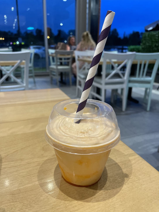 Comme toujours, il est possible de compléter notre repas avec l’un des nombreux desserts glacés de leur crèmerie: nous avons particulièrement apprécié, cette fois-ci, leurs nouveaux «givrés» (de la crème glacée molle mélangée avec l’une de leurs huit saveurs de slush). Laissez-vous tenter!