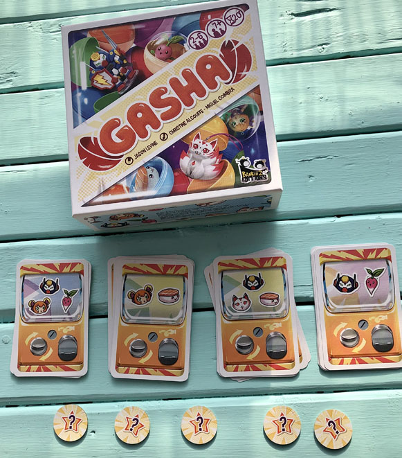 Gasha est un nouveau jeu de cartes inspiré de ces machines distributrices, qui s’adresse aux jeunes de 7 ans et plus. L’objectif du jeu est d’accumuler des Gashas, en espérant obtenir les bons pour les échanger contre des «cartes Collection». Celles-ci peuvent rapporter des points, mais aussi des «jetons Bonus»: au terme de la partie, c’est le joueur avec le plus de points qui gagne. Un jeu qui devient rapidement addictif!