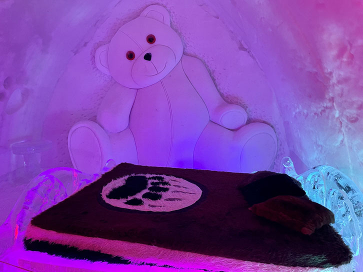 Important à noter: cette section est interdite aux visiteurs après 20h, puisqu’elle est alors réservée aux clients qui ont réservé leur nuit à l’Hôtel de glace.