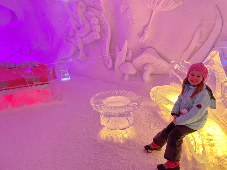 L’un des points importants qui nous a donné envie de faire cette escapade de 24h est que la visite de l’Hôtel de glace est gratuite lorsque l’on séjourne au moins une nuit à l’Hôtel Valcartier. Quelle bonne idée! Nous en avons donc profité pour aller voir l’endroit deux fois plutôt qu’une et y découvrir deux ambiances différentes, de jour et de soir.
