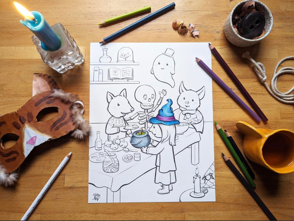 Envie d’en avoir encore plus? Le coloriage ci-haut ainsi que plusieurs autres sont disponibles sur sa page Patreon… Aller jeter un coup d’oeil!