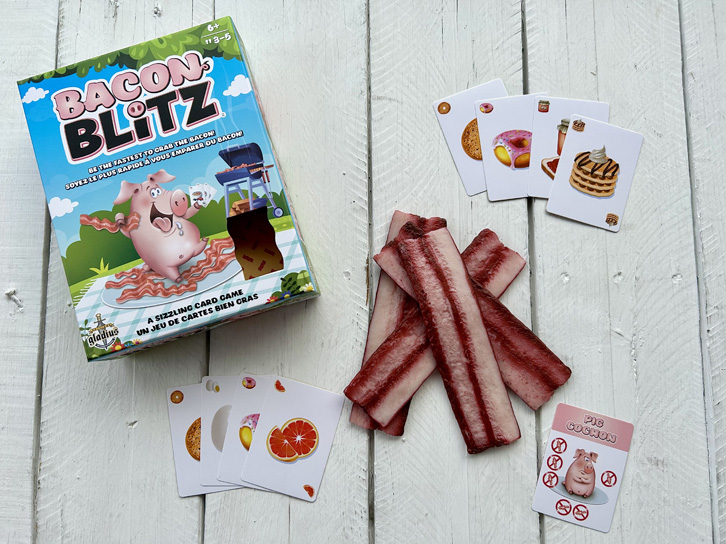 Également nouveau chez Gladius: il s’agit d’un jeu qui s’adresse aux jeunes de 6 ans et plus et qui pourrait très bien accompagner un brunch du temps des fêtes. Dans Bacon Blitz, on se donne des cartes rapidement en espérant être le premier à en obtenir trois identiques. Lorsque cela survient, tout le monde doit se dépêcher à prendre un morceau de bacon pour ne pas recevoir de pénalité!