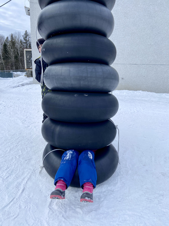 Pour des descentes en gros groupe, optez plutôt pour le Rafting, qui peut accueillir jusqu’à 12 personnes selon les conditions de neige. Pour une descente qui tourne un peu moins que le Vortex360, essayez la Tornade en famille. Dans tous les cas, notre fille et notre préado ont beaucoup aimé!