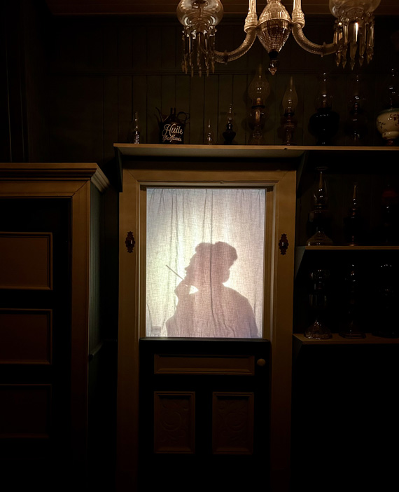 Présenté de 21h à minuit, du mercredi au samedi, le « Village Parallèle » n’est pas animé par des comédiens, mais plutôt par des jeux de lumières, de sons et de projections vidéos. C’est une expérience immersive vraiment originale, où l’on déambule à notre guise dans le Village et où il est possible d’entrer dans certains bâtiments où la réalité est drôlement déformée.