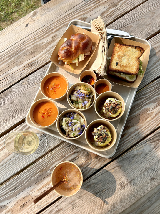 Dans ce magnifique coin de campagne, le menu change selon les saisons et ce que la terre a à offrir. Un menu à la carte est disponible en soirée, mais pour notre part, nous étions sur place pour profiter d’un pique-nique estival.