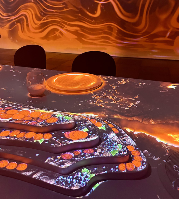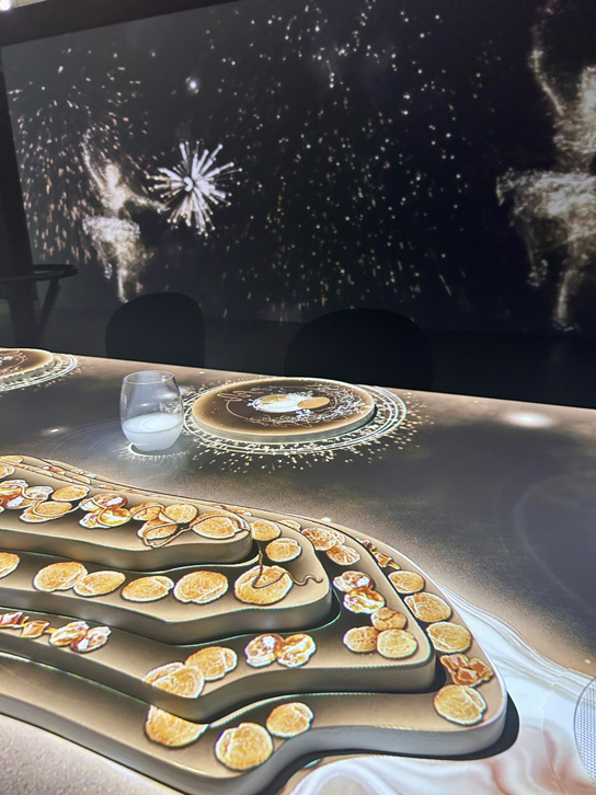 Le clou de l’exposition Banquet est certainement la magnifique expérience qui honore le repas gastronomique français et qui est inspirée d’un menu créé par les chefs Thierry Marx et Raphaël Haumont.