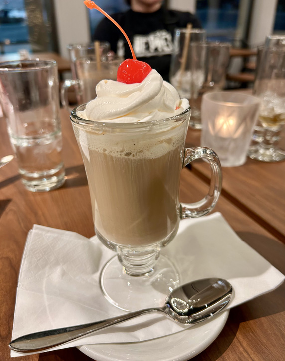 Au menu, nous avons beaucoup apprécié la soupe à l’oignon, le panier de cornichons frits avec sauce ranch, la poutine Redbird ainsi que les cafés alcoolisés au Saint-Crème.