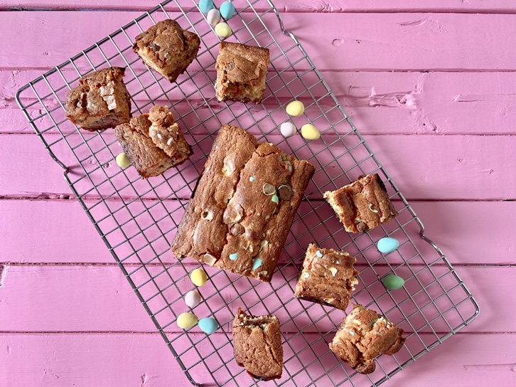 Cuisiner des blondies aux Mini Eggs et des biscuits en forme de fleurs