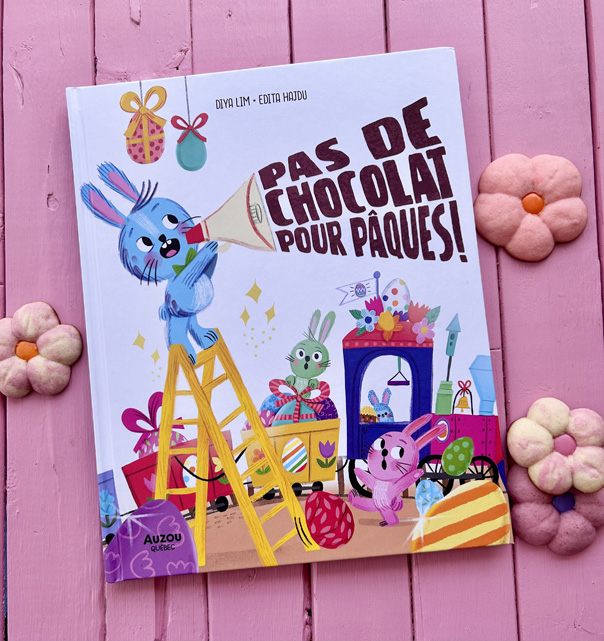 Même s’il s’adresse à des enfants beaucoup plus jeunes que les miens – pour les 3 à 6 ans, environ – je voulais tout de même vous présenter ce nouvel album, publié chez Auzou Québec: Pas de chocolat pour Pâques!