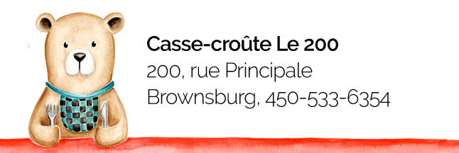 Comme vous serez bien trop occupés à profiter de l’endroit plutôt qu’à cuisiner (même si les dômes sont munis d’une cuisine bien équipée), on vous suggère de visiter le Casse-croûte Le 200, au centre du village, à moins de 5 minutes de voiture. Les employés de la petite maison jaune vous accueilleront gentiment sur place, à l’intérieur ou à l’extérieur, mais vous pourrez bien entendu rapporter votre repas à votre dôme, si vous le préférez.
