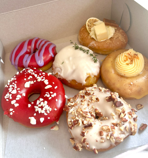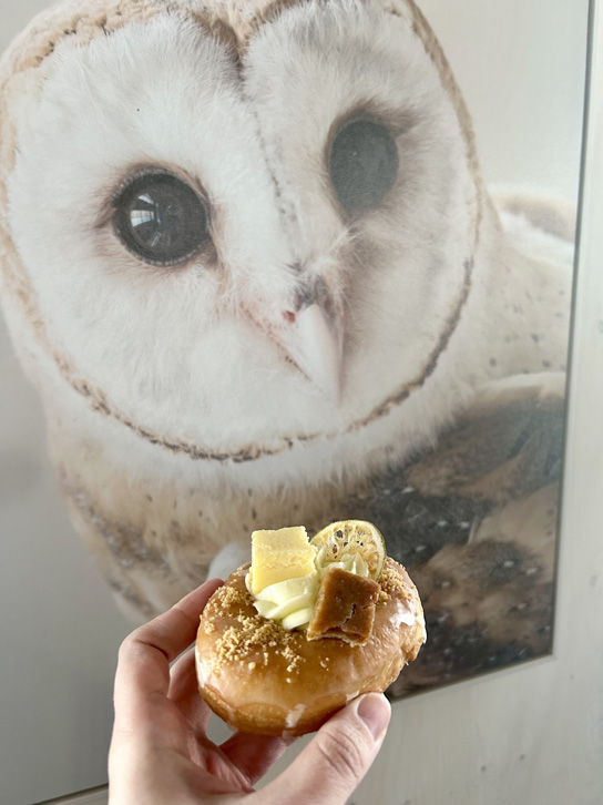 Nous avons eu un coup de coeur pour leurs spécialités du mois: le beigne pêche et crème, le beigne cassis et violette (wow!), mais aussi le cheesecake à la framboise et à la rose. Nous reviendrons assurément!
