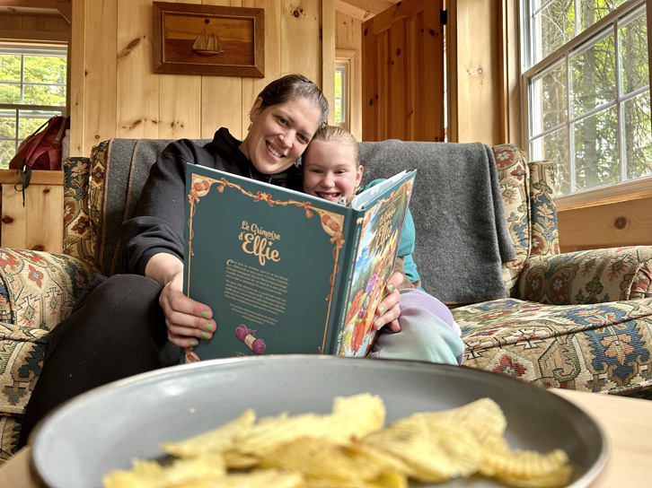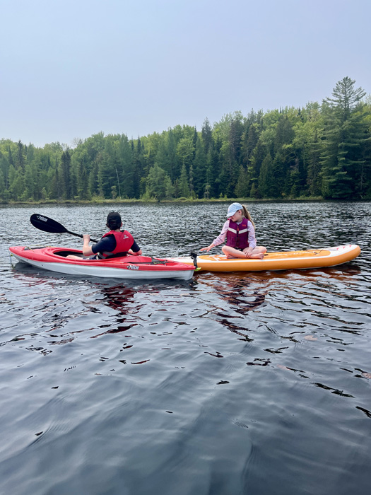 Le temps s’est un peu arrêté, sur place, et nous en avons profité pour faire du kayak et de la planche à pagaie, cuisiner lentement, jouer quelques parties de Uno, lire et dessiner, faire griller des guimauves sur un feu de bois à l’extérieur…