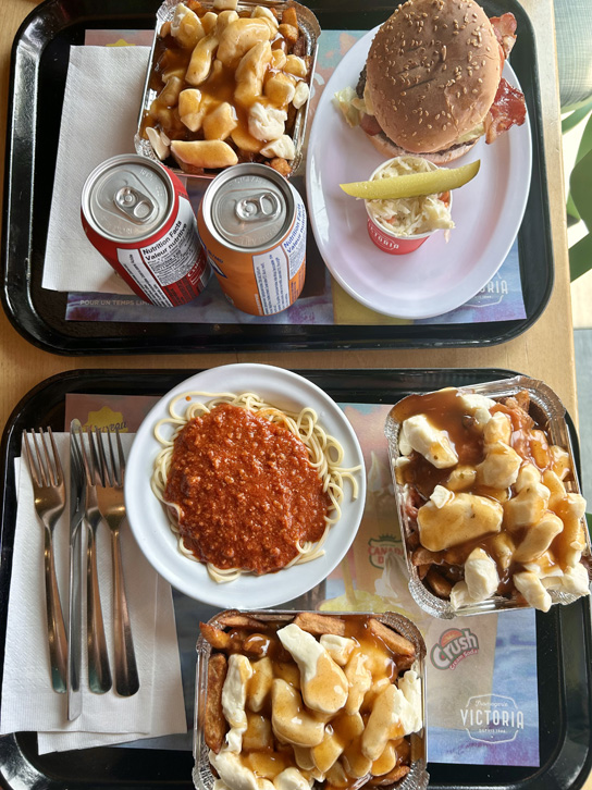 Nous en avons profité pour y dîner, cette fois-ci, avant de poursuivre notre route vers Boisbriand. J’y ai beaucoup aimé la nouvelle poutine Aloha, qui est garnie d’ananas et de jambon effiloché. Et nous prenons toujours des milkshakes pour le dessert… Une valeur sûre, si vous passez dans le coin!