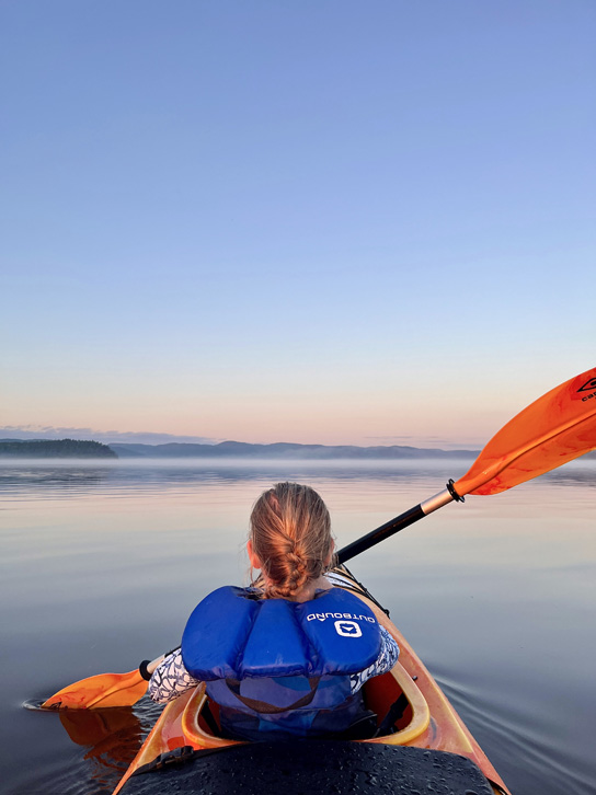 Nous avions ensuite rendez-vous, en début de soirée, pour faire l’activité de kayak en famille, à la brunante. Nous en gardons des souvenirs absolument inoubliables!