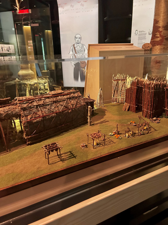 Comme mentionné précédemment, en restant à l’Hôtel-Musée Premières Nations, tout est à proximité… incluant le musée! Nos jeunes avaient un intérêt tout particulier pour ce qui entoure la tradition des maisons longues et palissades, les ayant longuement étudiées à l’école. Parfois, ça fait du bien de sortir du cadre scolaire pour mieux comprendre et s’imprégner de tout ce qui entoure ces notions… Nous vous suggérons d’effectuer la visite avec un audioguide, il est vraiment bien fait.