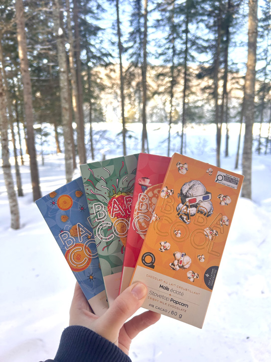 Pour agrémenter votre séjour, il est même possible de faire votre réserve de chocolat chaud directement à Mont-Blanc, chez Atelier BabaCool! Leur chocolat chaud aux bananes est notre favori, sans oublier leurs tablettes de chocolat croustillant « cornet fraise » et « maïs éclaté ».