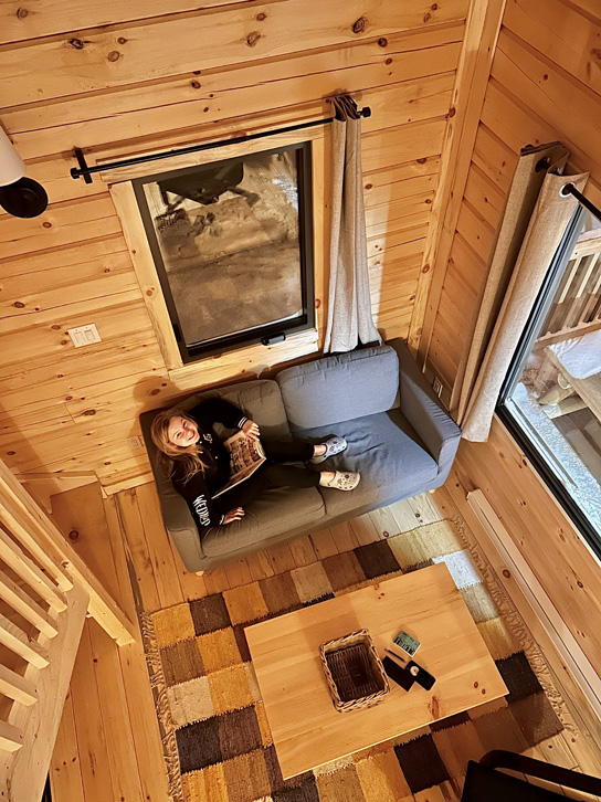 Si vous cherchez un endroit douillet pour vous poser en famille dans la forêt, avec le chauffage, l’électricité, l’eau potable, une cuisine complète et une salle de bain avec douche, vous allez adorer les chalets chez Huttopia Les Deux Lacs. Conçus pour recevoir jusqu’à 6 personnes, on n’y manque de rien, et nous y étions bien au chaud!
