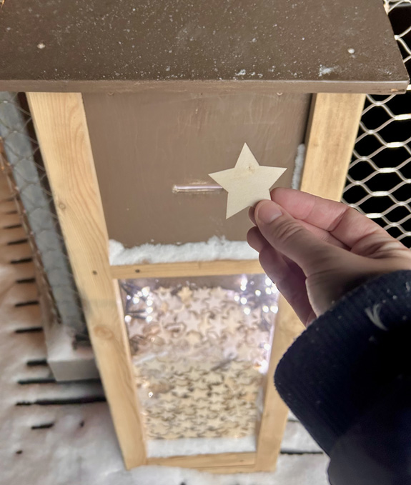 Au départ, on offre à tous les visiteurs une étoile en bois, qu’il sera possible de déposer tout en haut de la tour, pour faire un voeu. Il s’agit vraiment d’une belle balade à faire en famille.
