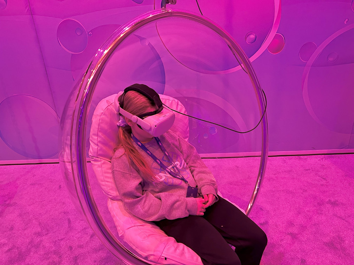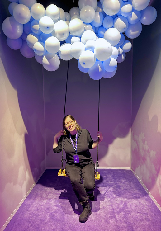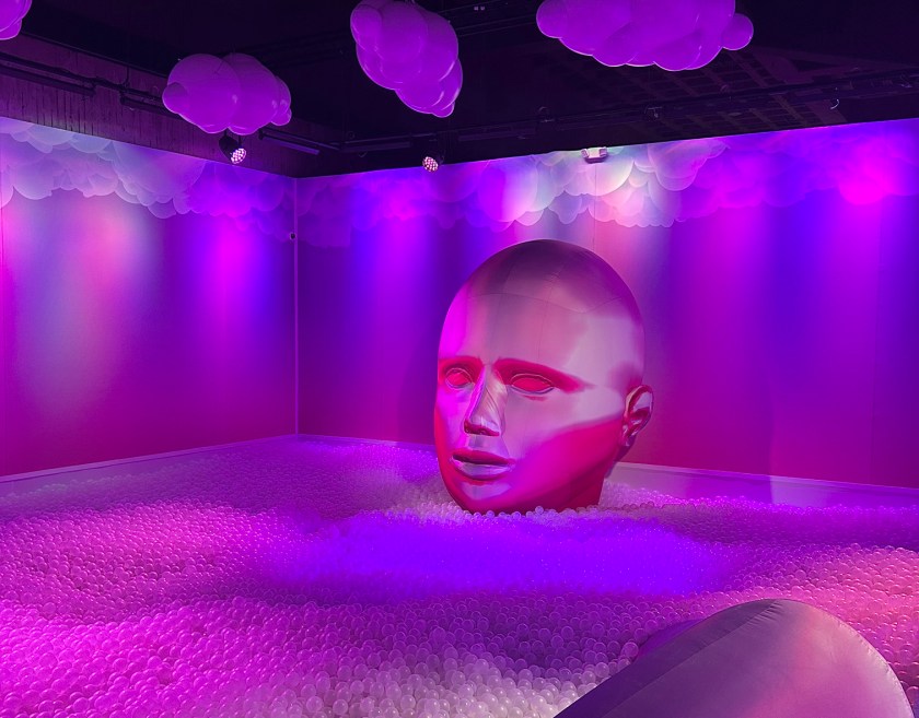 La thématique « bulles » y est exploitée sous plusieurs formes: si vous choisissez l’option VIP (plus coûteuse), elle sera même agrémentée d’une courte expérience de réalité virtuelle d’une dizaine de minutes, à la toute fin du parcours, où l’on se balade dans un univers fantastique, vous l’aurez deviné, rempli de bulles.