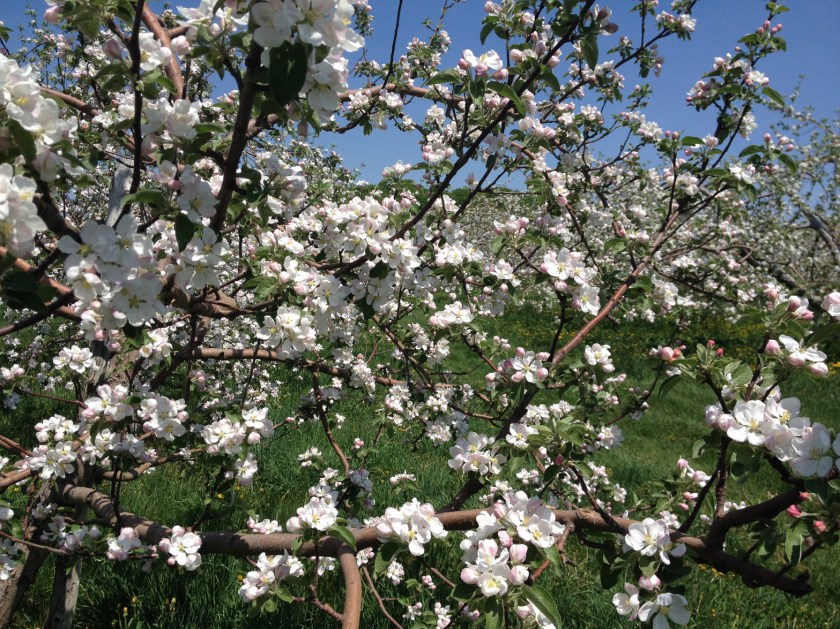 Saviez-vous que, chaque année, en mai, plusieurs vergers ouvrent leurs portes durant la période de floraison? Pour la première fois, le weekend dernier, nous sommes allés faire un tour chez Jude-Pommes, à Oka, pour être témoins de ce spectacle éblouissant et pique-niquer en famille. Contrairement à la période d’auto-cueillette qui a généralement lieu de la fin août au début d’octobre, la floraison des vergers dure à peine une semaine et est beaucoup moins populaire… On se demande bien pourquoi! Chez Jude-Pomme, c’est le moment idéal pour amener son pique-nique et aller faire une sortie paisible et ensoleillée en famille! Vous n’avez pas envie de vous préparer un pique-nique? Faites un arrêt au Magasin de l’Abbaye d’Oka que vous croiserez en chemin quelques minutes plus tôt, à l’intersection du Chemin d’Oka et du rang Sainte-Sophie; vous y trouverez tout ce dont vous avez besoin. Si la période d’auto-cueillette est assez achalandée un peu partout dans la province, cette semaine de mai où les allées de pommiers, de poiriers et de pruniers sont en fleurs, dégage quelque …