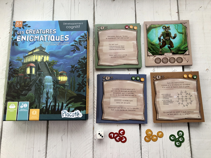Le jeu Les Créatures énigmatiques vient tout juste de paraître, mais nous savions qu’il aurait énormément de succès chez nous! Ici, ce sont tous les membres de la famille (et particulièrement les jeunes de 8 ans à 14 ans) qui doivent exercer leurs habiletés logiques et mathématiques pour résoudre rapidement des énigmes et ainsi accumuler des jetons. Ceux-ci serviront à combattre des créatures fantastiques et à accumuler des points. Ne vous croyez surtout pas invincibles: les adultes aussi auront à se creuser les méninges!