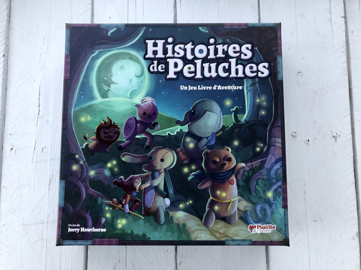 Nous avons attendu avec impatience le jeu Histoires de Peluches durant plusieurs mois, cette année, puisqu’il était en rupture de stock, mais l’attente en a valu le coup! Il s’agit d’un jeu coopératif vraiment unique, qui s’adresse aux jeunes de 8 ans et plus, qui peut réunir de 2 à 4 joueurs et où la planche de jeu est… un livre d’aventure! Les joueurs incarnent différentes peluches qui doivent protéger la petite fille à laquelle ils appartiennent des monstres cachés sous son lit.